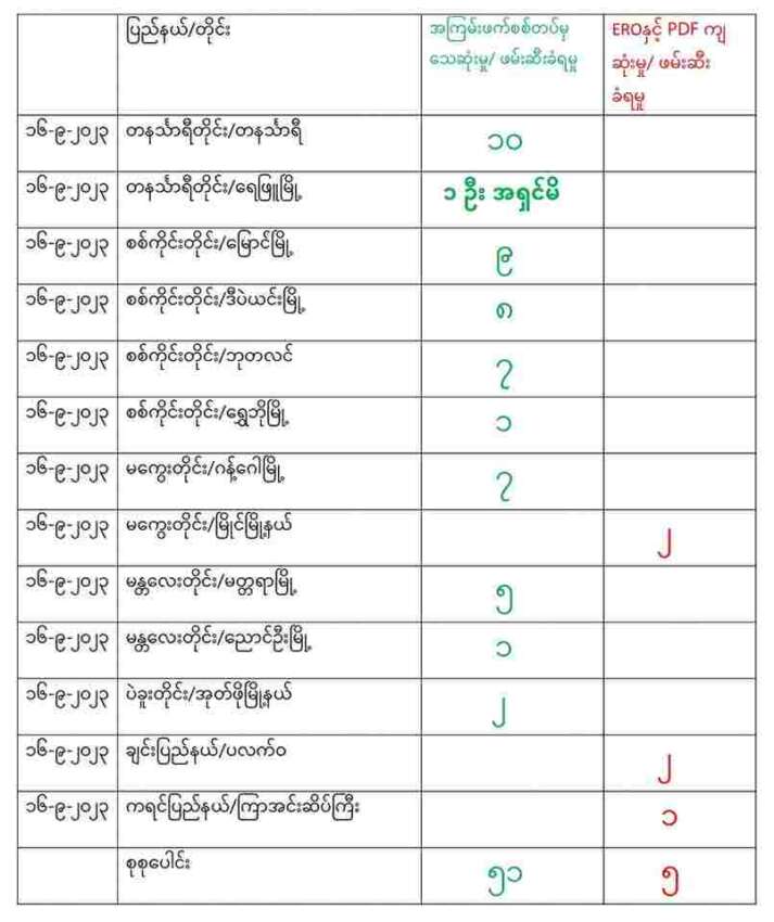 မြန်မာနိုင်ငံတစ်ဝန်း စက်တင်ဘာလ ၁၆ ရက်နေ့ ရရှိထားသော အချက်အလက် များအရ စစ်ကောင်စီတပ်ဖွဲ့ဝင် ၅၀ ဦးသေဆုံးကြောင်း ပြည်သူ့ကာ ကွယ်ရေး တပ်ဖွဲ့များ၏ ထုတ်ပြန်ချက်နှင့်ပြောဆိုချက် များ အရ သိရှိရသည်။