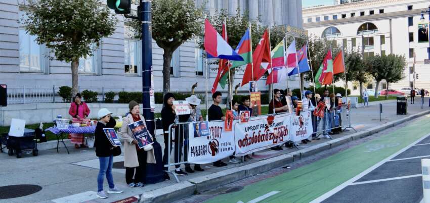 အမေရိကန်ပြည်ထောင်စု၊ ကယ်လီဖိုးနီးယားပြည်နယ်၊ ဆန်ဖရန်စစ်ကို မြို့ မြို့တော်ခန်းမရှေ့တွင် “ဖက်ဆစ်ရွေးကောက် ခွေးထွက်ပေါက် မဲမပေးနဲ့သပိတ်မှောက် ဖိရင်ကြွကြ ထိရင်ချကြဟေ့” ခေါင်းစဉ်ဖြင့် ၁၆၄ ကြိမ်မြောက် စဉ်ဆက်မပြတ် မြေပြင်လူထုသပိတ်တိုက်ပွဲကို ဆင်နွှဲခဲ့ကြောင်း သိရှိရသည်။