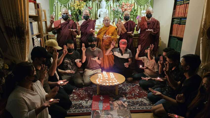 ထို့ပြင် စစ်အာဏာအသိမ်းခံရပြီး စစ်အုပ်စု၏ မတရားသတ်ဖျက်ခြင်းခံရသော ပြည်သူရှေ့က မားမားမတ်မတ်ရပ်တည်ကာ အသက်ပေးသွားရသော အာဇာနည်းများ ကောင်းမြတ်သော ဘုံဘဝ၊ ချမ်းသာသော ဘုံဘဝများရောက်ရှိပါစေကြောင်း ဆုတောင်းခဲ့ကြကြောင်း သိရှိရသည်။