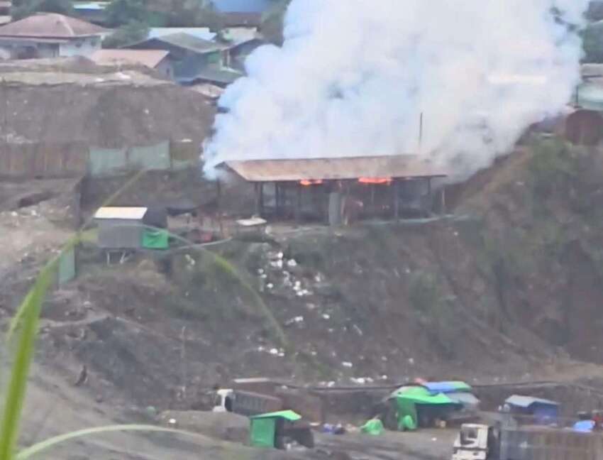 ဓာတ်ပုံ- ယခင်လများအတွင်း ဖားကန့်တွင် စစ်တပ်က ကျောက်မျက်လုပ်ကွက်များကို စစ်ကြောင်းထိုး မီးရှို့ဖျက်ဆီးခဲ့စဉ်။
