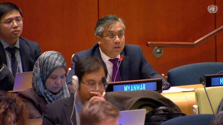 မြန်မာနိုင်ငံအပါအဝင် ကမ္ဘာ့နေရာ အနှံ့တွင် လူသားမျိုးနွယ်အပေါ် ကျူးလွန်သည့် ရာဇဝတ်မှုများ ဆက်လက်ဖြစ်ပေါ် နေလျက်ရှိ၊ လူသားမျိုးနွယ်အပေါ် ကျူးလွန်သည့် ရာဇဝတ်မှုများကို အပြည်ပြည်ဆိုင်ရာ အသိုက်အဝန်းက ပြတ်သားစွာ တုန့်ပြန်အရေးယူဆောင်ရွက်ရန် ပျက်ကွက်နေခြင်း၏ ကြောက်မက်ဖွယ်ရာ နောက်ဆက်တွဲ အကျိုးဆက်များကို မြန်မာနိုင်ငံ၏ လက်ရှိအခြေအနေက ထင်ရှားစွာ လှစ်ဟ ပြသနေကြောင်း၊ ၂၀၂၅ ခုနှစ် စက်တင်ဘာလအတွင်း လူ့အခွင့်အရေးကောင်စီသို့ တင်သွင်းခဲ့သည့် မြန်မာနိုင်ငံ ဆိုင်ရာ လွတ်လပ်သော စုံစမ်းစစ်ဆေးရေး ယန္တရား၏ အစီရင်ခံစာ၌ အကြမ်းဖက်စစ်အုပ်စုက ကျူးလွန်နေသည့် ရာဇဝတ်မှုများ ပိုမိုပြင်းထန်လာလျက်ရှိကြောင်းကို စိုးရိမ်ဖွယ်ရာ အထောက်အထားများဖြင့် ဖော်ပြထားကြောင်း သံအမတ်ကြီးက ပြောဆိုသည်။