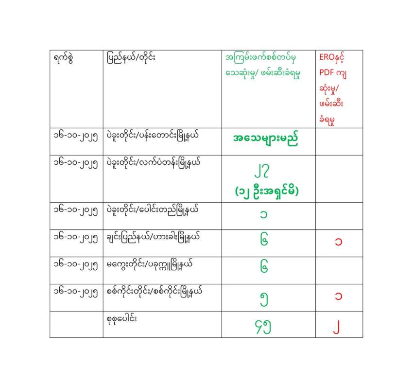 မြန်မာနိုင်ငံတစ်ဝန်း အောက်တိုဘာလ ၁၆ ရက်နေ့ ရရှိထားသော အချက် အလက်များအရ စစ် ကောင်စီတပ်ဖွဲ့ဝင် ၃၃ ဦး သေဆုံးကြောင်း ပြည်သူ့ကာကွယ်ရေးတပ်ဖွဲ့များ၏ ထုတ်ပြန်ချက်နှင့် ပြောဆိုချက်များ အရ သိရှိရသည်။