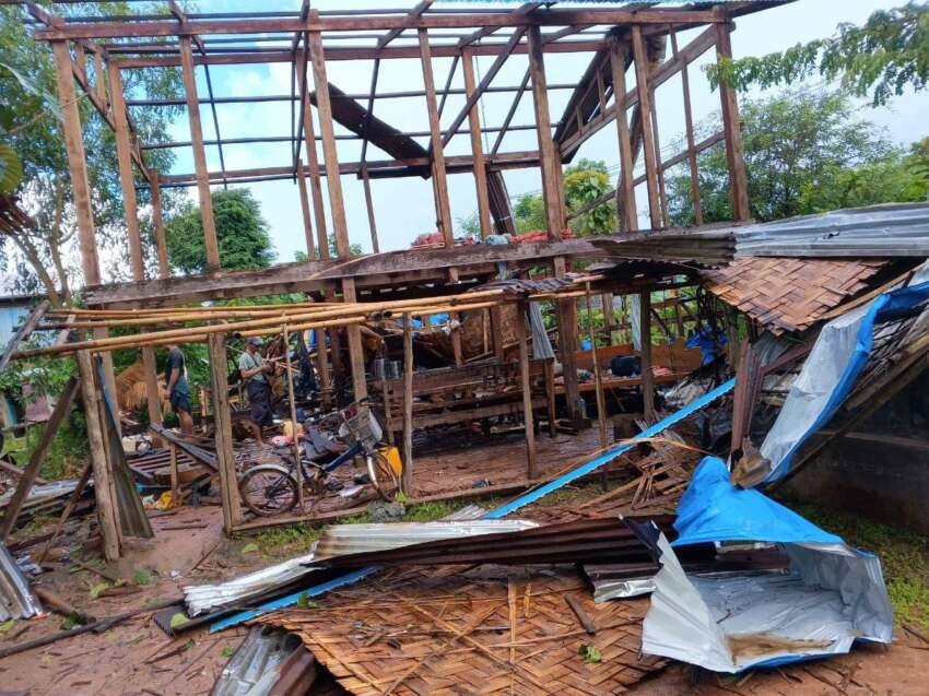 ဓာတ်ပုံ – ပဲခူးတိုင်းအတွင်း အကြမ်းဖက် စစ်တပ်က လေကြောင်းဖြင့် ဗုံးကျဲ တိုက်ခိုက်ခြင်းကြောင့် ပျက်စီးသွားသော နေအိမ် ၁ လုံး (ပုံအဟောင်းဖြစ်သည်)