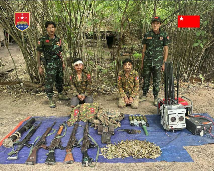 ထို့အပြင် အကြမ်ဖးက်စစ်ကောင်စီတပ်သားများထံမှ ဒရုန်းဂျမ်ပါ အထိုင်စက်ကြီး ၁ လုံး၊ MA-11 အ မျိုး အစား သေနတ် ၁ လက်၊ MA-3 အမျိုးအစား သေနတ် ၁ လက်၊ G3 အမျိုးအစား သေနတ် ၃ လက်၊ ၆၀ မမ ၁ လက်၊ ပစ္စတို ၁ လက်၊ ၆၀ မမ ကျည် ၅ လုံး ကျည်ဘောက် ၁၀ ခု၊ ကျည်မျိုးစုံ အတောင့် ၁၀၀၀ ခန့်နှင့် မီးစက် ၁ လုံးတို့ကို သိမ်းဆည်းရရှိပြီး တော်လှန်ရေးတပ်ဖွဲ့ဝင် ၂ ဦး လည်း ထိခိုက်ဒဏ်ရာရရှိခဲ့ကြောင်း သိရသည်။