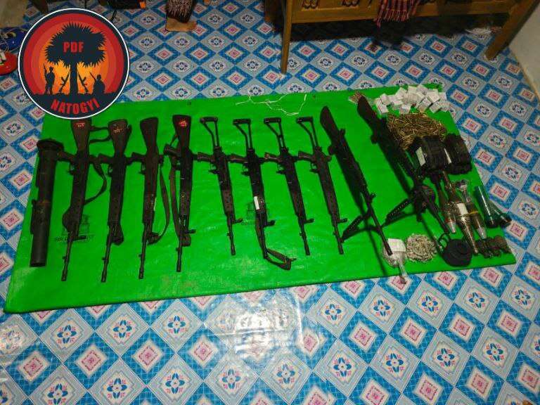 ထိုတိုက်ပွဲအတွင်း အကြမ်းဖက် စစ်တပ်ထံမှ ငါးကြင်းမှီး (၁)လက်၊ MA-11 (၃)လက်၊ G-3 (၂)လက်၊ MA-1 (၁)လက်၊ M79 (၁)လက်၊ MA-5(၂)လက်၊ Drone (၂)စီး၊ ကျည်မျိုးစုံ (၃၃၁၂)တောင့်၊ ၄၀မမ (၃)လုံး၊ ၆၀မမ (၇)လုံး၊ RPG (၁)ဖူး၊ drop bomb (၄)ဖာ၊ ပိုယမ်းတောင့် (၁၁)တောင့်၊ လက်ပစ်ဗုံး(၁၂)လုံး၊ အီနာဂါ (၁)လုံး၊ ကျည်ဘောက်(၂၁)ဘောက်၊ ကတ်သီး (၁၃) ခု ၊jammer ကား (၁)စီး ၊ ကား (၃)စီး တို့ သိမ်းဆည်းရမိခဲ့ကြောင်း သိရသည်။