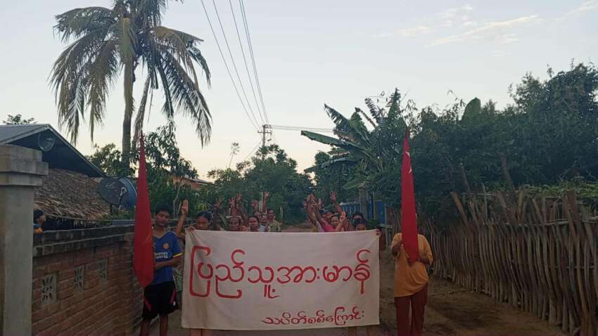 ယင်းမာပင်တွင် ပြည်သူ့အားမာန်သပိတ်စစ်ကြောင်း တရားမဝင် ရွေးကောက်ပွဲဆန့်ကျင်ဆန္ဒပြ