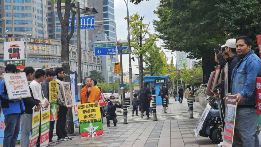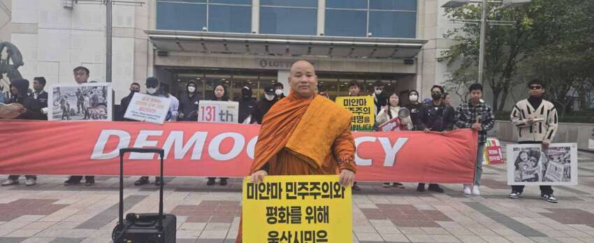 ဆန္ဒပြပွဲကို အူလ်ဆန်မြို့ကိုရီးယားကူညီရေး အီဂျူမင်းစင်တာက ဦးဆောင်ခဲ့ပြီး ဂယောင်ဂျူး၊ဒယ်ဂူးမြို့စသောနီးစပ်ရာမြို့များမှ မြန်မာ့ အရေးတက်ကြွလှုပ်ရှားသူများ၊ နွေဦးတော်လှန်ရေးတက်ကြွလှုပ်ရှားသူ ဒယ်ဂူးဘုန်းဘုန်းက ဦးဆောင်၍ “စစ်အာဏာရှင်စနစ်ကျဆုံးရေး၊ အတုအယောင်ရွေးကောက်ပွဲအလိုမရှိ၊ထွက်ပေါက်မဟုတ်ဘူးထောင်ချောက်” စသောကြွေးကြော်သံများကြွေးကြော်ကာ အာဏာရှင်စနစ်ဆိုးမှ လွတ်မြောက်သည်အထိ ဆက်လက်ပါဝင်ဆင်နွှဲကြရန် ပြည်တွင်းပြည်ပရှိ မြန်မာနိုင်ငံသူ နိုင်ငံသားတို့ကို တိုက်တွန်းအားပေးစကားမိန့်ကြားခဲ့ကြောင်း သိရှိရသည်။