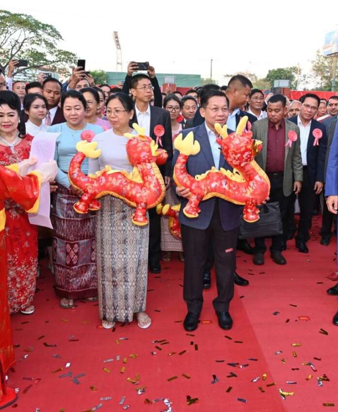 ဓာတ်ပုံ- ရန်ကုန်မြို့ တရုတ်သံရုံးတွင် ပြုလုပ်သော တရုတ်နှစ်သစ်ကူးပွဲ တက်ရောက်ခဲ့သည့် အကြမ်းဖက် မင်းအောင်လှိုင်နှင့် မိန်းမ ကြူကြူလှ။