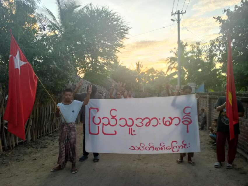 Politics ပြည်သူ့အားမာန် သပိတ် စစ်ကြောင်းက စစ်အာဏာရှင်ဆန့်ကျင်ရေး ချီတက် ဆန္ဒပြ By Yangon Khit Thit News Agency November 2, 2025 0 86 Share FacebookTwitterPinterestWhatsAppLinkedinPrintTelegramCopy URL Must read မြန်မာနိုင်ငံတစ်ဝန်း စစ်ကောင်စီတပ်ဖွဲ့ဝင် ၁၀၀ ဦးသေဆုံး November 7, 2025 တီးတိန်မြို့မှ စစ်ကြောင်းထိုးရန် ထွက်လာသော စစ်တပ်ကို တိုက်ခိုက်မှု စစ်သား ၄၀ ဦးသေဆုံးပြီး လက်နက်ခဲယမ်းများနှင့် စစ်သုံ့ပန်းတချို့ ရရှိ၊ စစ်တပ်က အဓမ္မပြုကျင့်ခဲ့သော အမျိုးသမီး ၁ ဦးအပါအဝင် ပြည်သူ ၁၄ ဦးကို ကယ်ထုတ်နိုင်ခဲ့ November 7, 2025 လောင်းလုံးမြို့နယ်တွင် စစ်တပ်က တရားမဝင် ရွေးကောက်ပွဲအတွက် မဲစာရင်းပြုစုနိုင်ရန် စစ်ကြောင်းထိုး၍ အိမ်ထောင်စု စာရင်းများ လိုက်ကောက်နေ November 7, 2025 ပေါက်မြို့ရှိ ကျေးရွာများကို စစ်တပ်က Y-12 လေယာဉ်ဖြင့် ဗုံး ၆၀ ကျော် ကျဲချ တိုက်ခိုက်မှု ပြည်သူများ ဘေးလွတ်ရာ ထွက်ပြေးနေရ၊ မူးတွင်လည်း စစ်တပ်က ဒရုန်းဖြင့် ဗုံးကျဲ၍ ကလေးငယ် ၁ ဦး အပါအဝင် ၂ ဦး ဒဏ်ရာရ November 7, 2025 Yangon Khit Thit News Agency ရန်ကုန်၊ နိုဝင်ဘာ ၂ ပြည်သူ့အားမာန် သပိတ် စစ်ကြောင်းက စစ်အာဏာရှင်၏ အတုအယောင် ရွေးကောက်ပွဲ ဆန့်ကျင်ရေး ဆန္ဒပြခဲ့ကြောင်း သိရသည် TagsDemonstrationspolitics Share FacebookTwitterPinterestWhatsAppLinkedinPrintTelegramCopy URL Previous articleတောင်ကြီးမြို့ မီးပုံးပျံပွဲ၌ ကြံ့ဖွတ်ပါတီက မီးပုံးပျံလွှင်တင်စဉ် မိုးရွာပြီး မီးလောင်ပျက်ကျမှုကြောင့် လူပိ၍ ၂ ဦးထက်မနည်းသေဆုံး ၊ အစာအဆိပ်သင့်မှုလည်းဖြစ်ခဲ့ပြီး ရဲ ၁ ဦးသေဆုံးကာ ၆ ဦး အရေး ပေါ် ဆေးရုံတင်လိုက်ရNext articleပေါက်မြို့နယ်အတွင်း စစ်ကြောင်ထိုးလာသည့် စစ်တပ်မှ ပြည်သူပိုင်နေအိမ်အတွင်း ကြက်ဝင်ဖမ်းသည့် စစ်သား ၃ ဦးကို အရှင်ဖမ်းမိကာ လက်နက်ခဲယမ်းများ သိမ်းဆည်းရရှိ၊ မိုင်းနင်းမိသော စစ်သား ၂ ဦးလည်း သေဆုံး - Advertisement - More articles သရက်ချောင်းမြို့နယ်အတွင်း အတုအယောင်ရွေးကောက်ပွဲဆန့်ကျင်ရေး စာသားများ လမ်းမထက်တွင် ရေးသား၍ လူထုဆန့်ကျင်ရေး လှုပ်ရှားမှုပြုလုပ် November 7, 2025 ချောင်းဦး ဆီမင်းသပိတ်ကို ဖြိုခွဲခံရခြင်း ၁လပြည့် ဝမ်းနည်းခြင်း ဆုတောင်း မေတ္တာပို့သပွဲပြုလုပ် November 6, 2025 TNLA ဆုတ်ခွာမည့်မြို့များကို PLA အပါအဝင် တော်လှန်ရေးတပ်ပေါင်းစုက အစွမ်းကုန်ကာကွယ်သွားရန် ပြင်ဆင်ထား November 4, 2025 - Advertisement - Latest article မြန်မာနိုင်ငံတစ်ဝန်း စစ်ကောင်စီတပ်ဖွဲ့ဝင် ၁၀၀ ဦးသေဆုံး November 7, 2025 တီးတိန်မြို့မှ စစ်ကြောင်းထိုးရန် ထွက်လာသော စစ်တပ်ကို တိုက်ခိုက်မှု စစ်သား ၄၀ ဦးသေဆုံးပြီး လက်နက်ခဲယမ်းများနှင့် စစ်သုံ့ပန်းတချို့ ရရှိ၊ စစ်တပ်က အဓမ္မပြုကျင့်ခဲ့သော အမျိုးသမီး ၁ ဦးအပါအဝင် ပြည်သူ ၁၄ ဦးကို ကယ်ထုတ်နိုင်ခဲ့ November 7, 2025 လောင်းလုံးမြို့နယ်တွင် စစ်တပ်က တရားမဝင် ရွေးကောက်ပွဲအတွက် မဲစာရင်းပြုစုနိုင်ရန် စစ်ကြောင်းထိုး၍ အိမ်ထောင်စု စာရင်းများ လိုက်ကောက်နေ November 7, 2025 ပေါက်မြို့ရှိ ကျေးရွာ