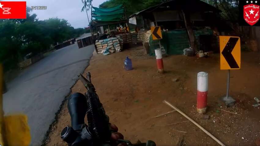 ဓာတ်ပုံ – မေလ ၁၉ ရက်နေ့က တောင်သာ-ကျောက်ပန်းတောင်း လမ်းပိုင်းရှိ တောင်သာမြို့ မင်္ဂလာဦးစစ်တပ်ဂိတ်ကို တော်လှန်ရေး တပ်ဖွဲ့များ ဝင်ရောက် တိုက်ခိုက်ခဲ့စဉ်။
