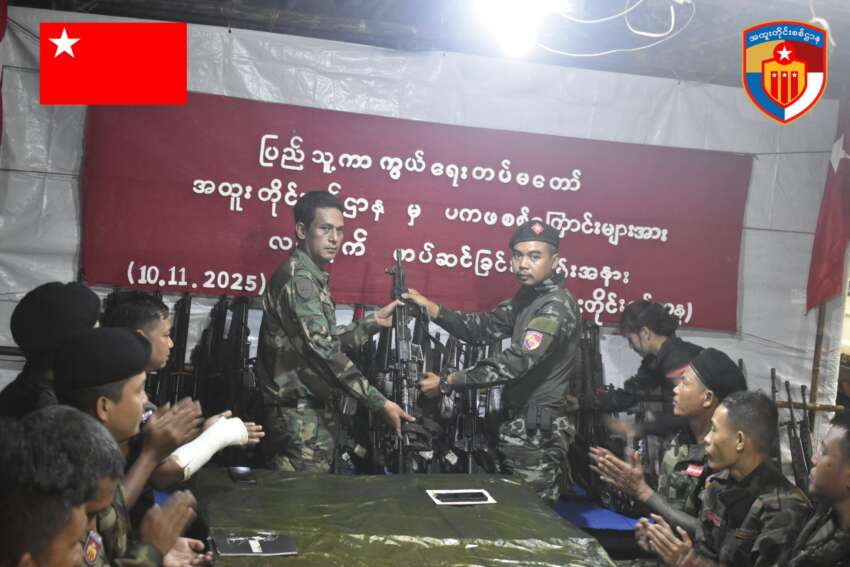 ယနေ့ နိုဝင်ဘာလ ၁၀ ရက်နေ့ နံနက် ၁၀ နာရီခန့်တွင် ပဲခူးတိုင်း ရှေ့တန်းစခန်းတစ်ခု၌ ပြည်သူ့ကာကွယ်ရေးတပ်မတော်၊ အထူးတိုင်းစစ်ဌာနက တိုင်းစစ်ဌာနစစ်ဆင်ရေးကွပ်ကဲမှုတွင် ပြည်သူ့ကာကွယ်ရေးအဖွဲ့ (ပကဖ) တိုက်ခိုက်ရေးစစ်ကြောင်းများအဖြစ် ကွပ်ကဲမှူခံယူ၍ စစ်ဆင်ရေးပူးပေါင်းဆောင်ရွက်နေသော ရန်ကုန်တိုင်းပကဖတိုက်ခိုက်ရေးစစ်ကြောင်း၊ မွန်ပြည်နယ်ပကဖတိုက်ခိုက်ရေးစစ်ကြောင်း နှင့် ပဲခူးခရိုင်ပကဖ တိုက်ခိုက်ရေးစစ်ကြောင်းများအား လက်နက်တပ်ဆင်ခြင်းအခမ်းအနား ပြုလုပ်ခဲ့ကြောင်း သိရှိရသည်။