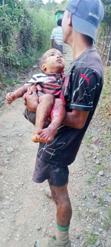 ကချင်ပြည်နယ်၊ ဖားကန့်မြို့နယ်၊ လုံးခင်းကျေးရွာအုပ်စု၊ ကထန်ကျေးရွာတွင် တိုက်ပွဲဖြစ်ပွားခြင်းမရှိ ပဲ အကြမ်းဖက်စစ်တပ်က Y12 လေယာဉ်ဖြင့် အကြိမ်ရေ ၃၀ ကျော် ဗုံးကျဲတိုက်ခိုက်ခဲ့ရာ အသက် ၁ နှစ်အရွယ် ကလေးငယ် ဒဏ်ရာရရှိပြီး မိခင်ဖြစ်သူမှာလည်း ဗုံးထိမှန် သေဆုံးသွားကြောင်း ဖားကန့်သတင်းရင်းမြစ်က ရန်ကုန်ခေတ်သစ်သတင်းဌာနထံသို့ ပြောကြား သည်။