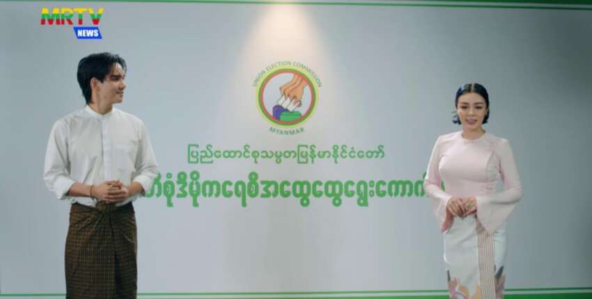 နိုဝင်ဘာ ၅ ရက်မှ စတင်ပြီး ရန်ကုန်မြို့တွင် စစ်တပ်က သရုပ်ဆောင်များ၊ အနုပညာရှင်များကိုအတင်းအကျပ် ဖိအားပေး၍ ရွေးကောက်ပွဲထောက်ခံ မဲပေးလှုပ်ရှားမှုများတွင် ရိုက်ကူးခိုင်းနေခြင်းဖြစ်ပြီး ယင်းလှုပ်ရှားမှုများတွင် စစ်အာဏာသိမ်းမှုကို ဆန့်ကျင်ဆန္ဒပြကြခဲ့သော ပြေတီဦး၊ ပိုင်တံခွန်၊ အိန္ဒြာကျော်ဇင် အပါအဝင် မင်းသား၊ မင်းသမီးများကို စစ်တပ်က ပါဝင်သရုပ် ဆောင်ခိုင်းထားသည်။