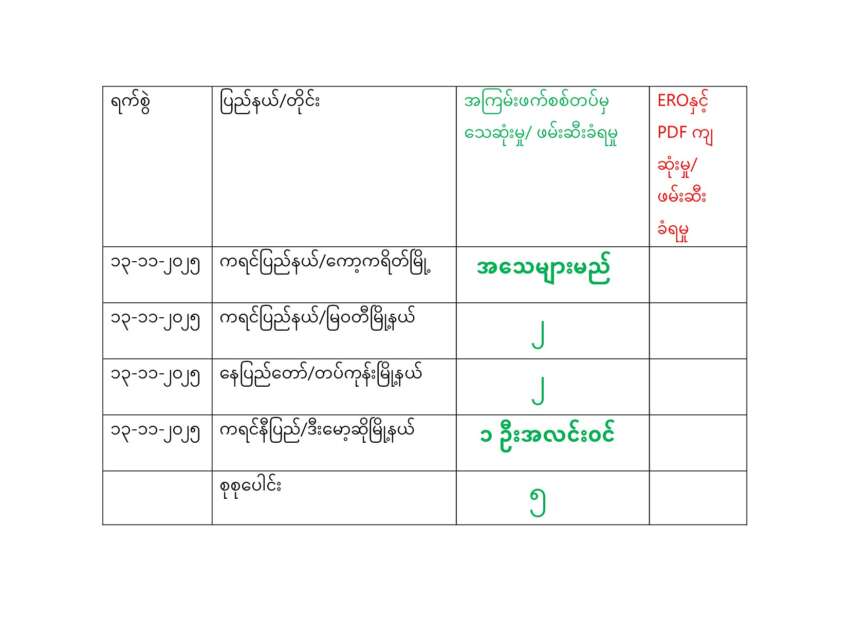 ရန်ကုန်ခေတ်သစ်အနေဖြင့် နေ့စဉ် စစ်သား သေဆုံးမှု စာရင်းများကို ထုတ်ပြန် ရာတွင် ဒေသကာ ကွယ်ရေးတပ်ဖွဲ့များ၏ ထုတ်ပြန်ချက်များနှင့် ပြောဆိုချက် များကို စုစည်းဖော် ပြရခြင်းဖြစ်ပြီး မြေ ပြင် အခြေအနေတွင် အမှန်တကယ် စစ်သားများ သေဆုံးမှု ရှိ၊ မရှိ ကွင်းဆင်း အတည်ပြုနိုင်ခြင်း မရှိသည်ကို သိစေအပ်ပါသည်။