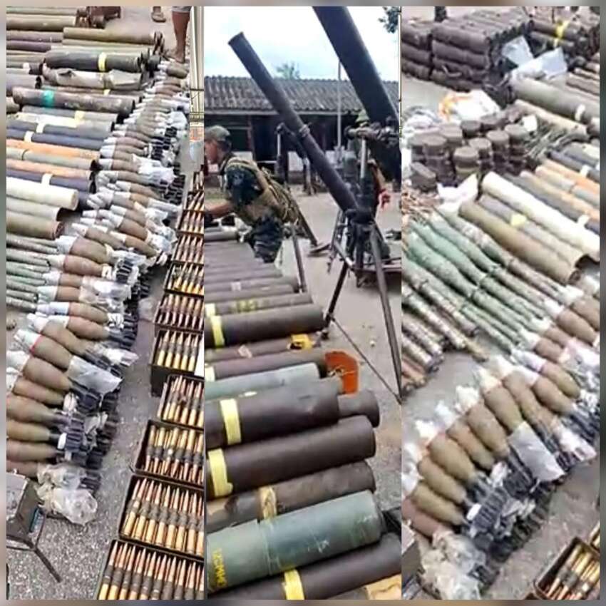 ဓာတ်ပုံ – လက်နက်နှင့်ရိက္ခာများ ယူဆောင်၍ အလံဖြူထောင် အလင်းဝင်လာသော စစ်သားများကို ထိုင်းစစ်တပ်က လက်ခံပြီး လက်နက်များ သိမ်းယူနေစဉ်။