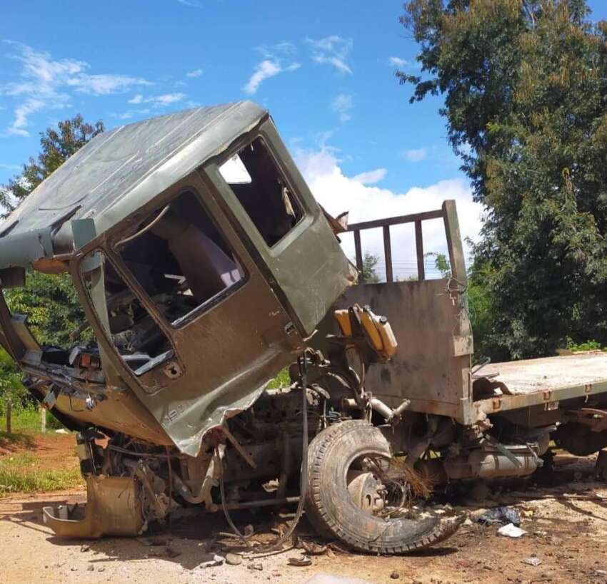 ဓာတ်ပုံ- ကရင်နီပြည်နယ်တွင် လွန်ခဲ့သော လများအတွင်း မိုင်းဆွဲခံရသော အကြမ်းဖက်စစ်ကောင်စီတပ်၏ စစ်ကားတစ်စီး။ (ပုံအဟောင်းဖြစ်ပါသည်)