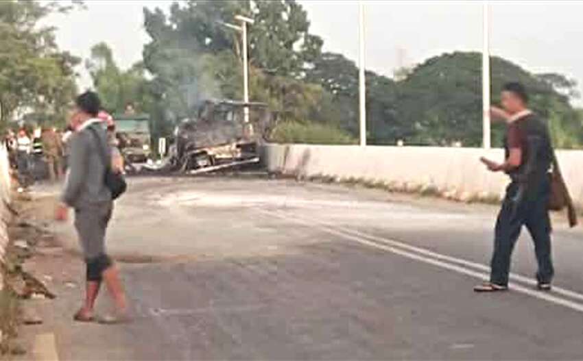ထိုသို့ တိမ်းမှောက်သွားပြီးနောက် ခဏအကြာတွင် စစ်ကားပေါ်တင်လာသော လက်နက်ခဲယမ်းများ ပေါက်ကွဲမှု ဖြစ်ပွားခဲ့ပြီး ကားပေါ်လိုက်ပါသော စစ်သား ၅ ဦး သေဆုံးကာ ၇ ဦး ပြင်းထန်ဒဏ်ရာရရှိခဲ့ကြောင်း သိရှိရသည်။