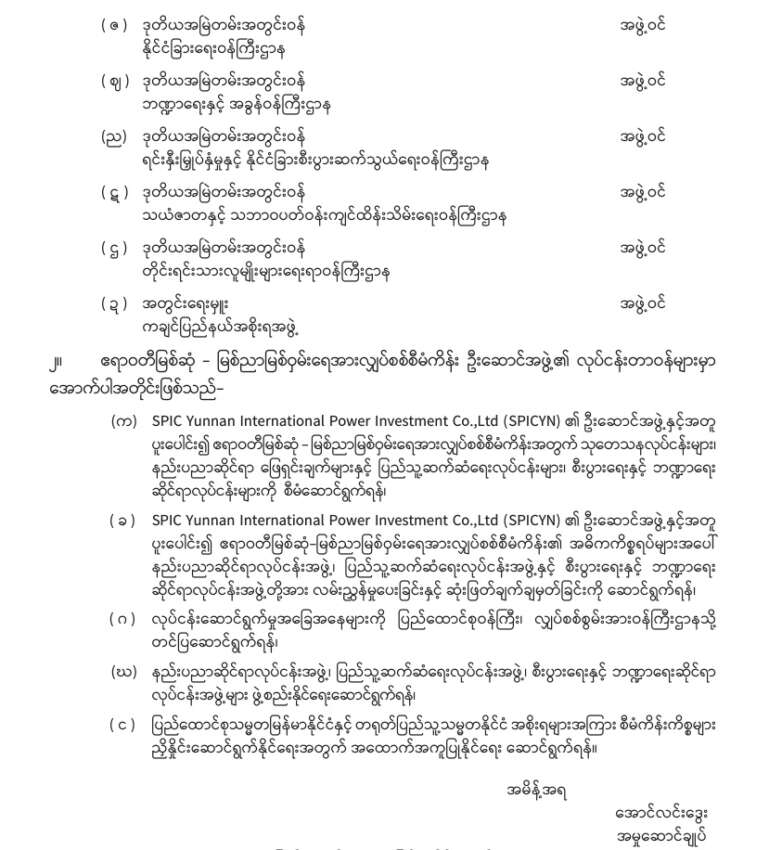ရပ်ဆိုင်းထားသော ဧရာ၀တီမြစ်ဆုံ ရေအားလျှပ်စစ်စီမံကိန်းအတွက် မင်းအောင်လှိုင်က ဦးဆောင် အဖွဲ့ ဖွဲ့စည်းလိုက်ပြီး တရုတ်ယူနန် SPICYN ကုမ္ပဏီနှင့်အတူ လုပ်ငန်းများ ပြန်လည်စတင်လိုက်ကြောင်း စစ်တပ်က ထုတ်ပြန်ထားသော ပြန်တမ်းအရ သိရှိရသည်။