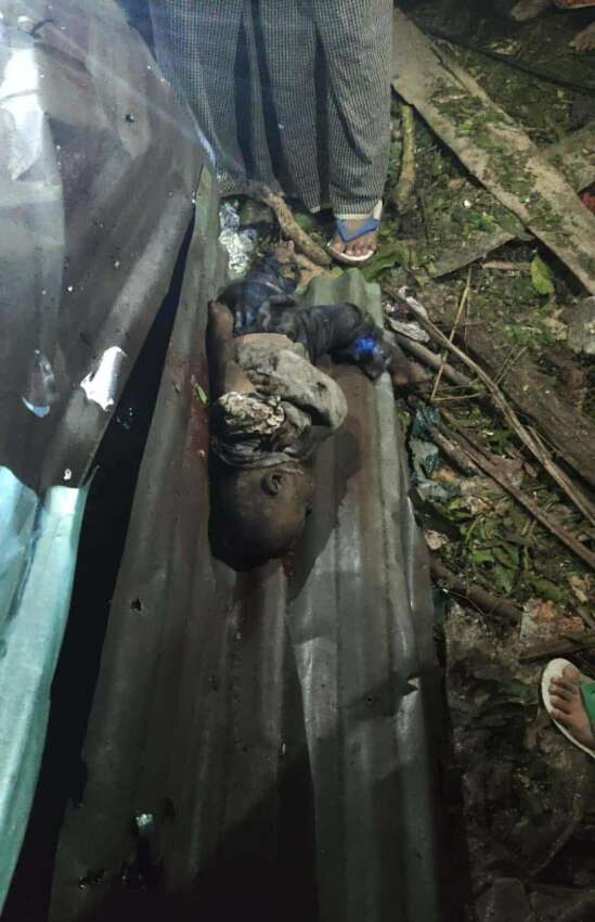 အကြမ်းဖက် စစ်တပ်၏ ဗုံးကျဲ တိုက်ခိုက်မှုအတွင်း တစ်အိမ်ထဲတွင် အတူနေထိုင်သည့် မိသားစုဝင် ၅ ဦးဖြစ်သော အသက် ၂၅ နှစ် အရွယ် ကိုရှိုင်းကို ၊ အသက် ၂၄ နှစ်အရွယ် မစုမြတ်လင်း ၊ အသက် ၂ နှစ် အရွယ် ရွှေပုံစံ ၊ အသက် ၂၁ နှစ် အရွယ် မောင်မာင်ဝင်း နှင့် အသက် ၄၀ နှစ် အရွယ် ရန်နိုင်ဝင်း တို့ သေဆုံးခဲ့ကြောင်း သိရှိရသည်။