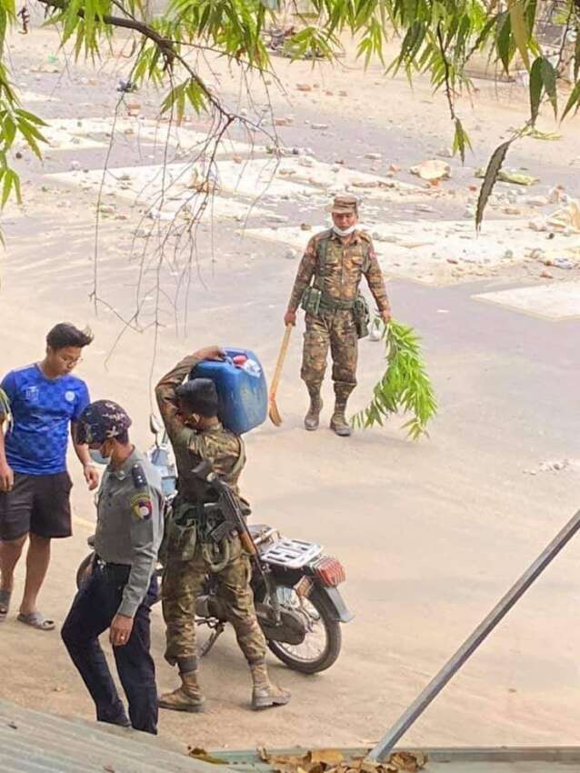 “အိမ်ရှင်လည်းစစ်သားဆိုတော့ တံခါးဖွင့်ပေးတာ အိမ်ထဲရောက်တာနဲ့ သေနတ်နဲ့ ထောက်ပြီး အိမ်ထဲ ဆိုင်ထဲက ပစ္စည်းတွေ မွှေတော့တာ ကုန်ပစ္စည်းတွေ ပိုက်ဆံတွေယူသွားတယ် နှစ်အိမ် စလုံး ဒီပုံစံနဲ့ပဲ ဓါးပြတိုက်သွားတယ်” ဟု ဒေသနေပြည်သူတစ်ဦးကပြောကြားသည်။