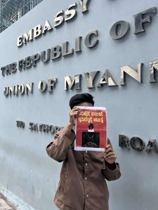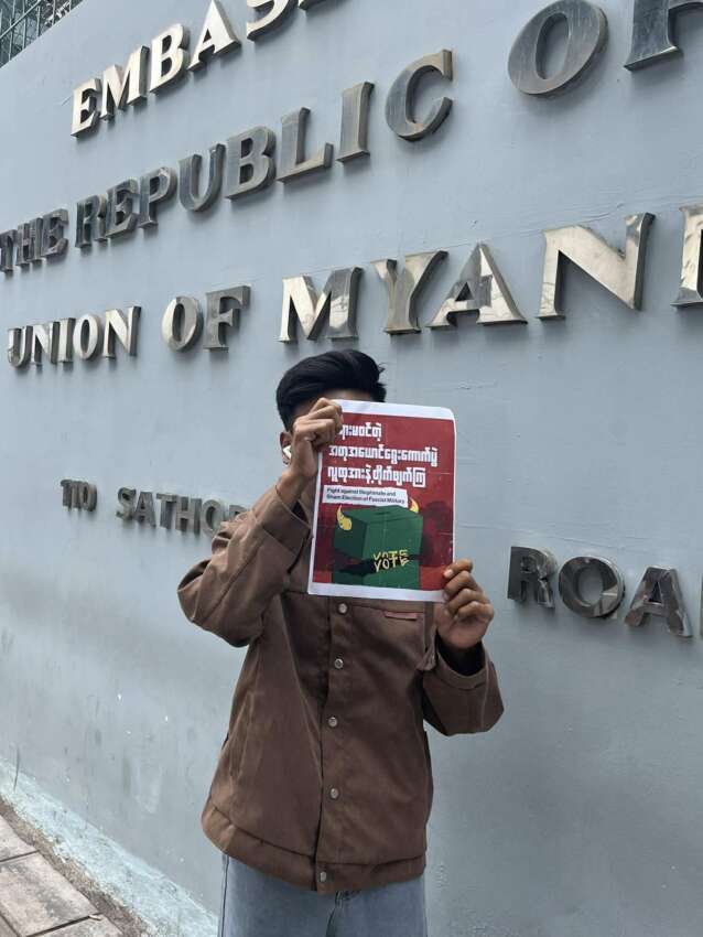 News ထိုင်းနိုင်ငံ ဘန်ကောက်မြို့ မြန်မာသံရုံးရှေ့တွင် စစ်တပ်၏ ရွေးကောက်ပွဲဆန့်ကျင်သည့် လှုပ်ရှားမှု ပြုလုပ် By Yangon Khit Thit News Agency December 5, 2025 0 90 Share FacebookTwitterPinterestWhatsAppLinkedinPrintTelegramCopy URL Must read မြန်မာနိုင်ငံတစ်ဝန်း စစ်ကောင်စီတပ်ဖွဲ့ဝင် ၁၅ ဦးသေဆုံး December 23, 2025 တောင်သာမြို့နယ်၊ ရုံးစည်ကြီးကျေးရွာတွင် တပ်စွဲထားသော စစ်တပ်ကို ဝင်ရောက် တိုက်ခိုက်မှု စစ်သား ၆ ဦးသေဆုံး December 23, 2025 ကောလင်းမြို့နယ်၊ နတ်အင်းရွာ စာသင်ကျောင်းကို စစ်တပ်က လေယာဉ်ဖြင့် ဗုံးကျဲ တိုက်ခိုက်မှု စစ်ဘေးရှောင် ပြည်သူ ၆ ဦး ထိခိုက်ဒဏ်ရာရ December 23, 2025 ရွှေရေကြည် သပိတ်စစ်ကြောင်းက စစ်တပ် ကျင်းပမည့် အတုအယောင်ရွေးကောက်ပွဲကို ဆန္ဒပြ December 23, 2025 Yangon Khit Thit News Agency ရန်ကုန်၊ ဒီဇင်ဘာ ၅ ထိုင်းနိုင်ငံတွင်း အကြမ်းဖက်စစ်တပ် ကျင်းပမည့်ရွေးကောက်ပွဲတွင် မပါကြရန်၊ အကြမ်းဖက်စစ်တပ်က မလိမ့်အပတ်နှင့် passport ကိစ္စများပြုလုပ်ရာတွင် ကြိုတင်ဆန္ဒမဲပေးခြင်း ပုံစံ ၁၅ ကို သံရုံးမှ ဝန်ထမ်းများက ဖြစ်စေ၊ ပွဲစားများမှ ဖြစ်စေ မဖြည့်စွက်မိစေရန်ရည်ရွယ်၍ ဘန်ကောက်မြို့ မြန်မာသံရုံးရှေ့တွင် စစ်တပ်၏ ရွေးကောက်ပွဲဆန့်ကျင်သည့် လှုပ်ရှားမှု ပြုလုပ်ခဲ့ကြောင်း သိရှိရသည်။ #မြန်မာ့နွေဦးတော်လှန်ရေး #ykt #yktnews #khitthitmedia #myanmar #media #burmese #foryou #foryoupage #NUG #springrevolution #KhitThitMedia #springrevolutionmyanmar2021 #PDF #againstmyanmarmilitarycoup #rejectmilitarycoupmyanmar TagsKhit Thit MedianewsNUGPDFSpring Revolution Share FacebookTwitterPinterestWhatsAppLinkedinPrintTelegramCopy URL Previous articleရေစကြို ခလရ ၂၅၇ တပ်ရင်းမှ တပ်ရေးဗိုလ်ကြီး သက်နိုင်ဦးကို အရှင်ဖမ်းမိသော်လည်း ပြန်လည်ခုခံတိုက်ခိုက်သဖြင့် ပစ်ခတ်ဖမ်းဆီးရာမှ ပွဲချင်းပြီးသေဆုံးNext articleမြ၀တီမြို့နယ်၊ မင်းလက်ပံကျေးရွာအနီး တိုက်ပွဲအပြင်းအထန်ဖြစ်ပွားနေကာ မြန်မာဘက်မှ ပစ်ခတ်သော လက်နက်ကြီးကျည်ထိမှန်၍ ထိုင်းနိုင်ငံသား ၁ ဦး အပြင်းအထန်ဒဏ်ရာရ - Advertisement - More articles တောင်သာမြို့နယ်၊ ရုံးစည်ကြီးကျေးရွာတွင် တပ်စွဲထားသော စစ်တပ်ကို ဝင်ရောက် တိုက်ခိုက်မှု စစ်သား ၆ ဦးသေဆုံး December 23, 2025 ကောလင်းမြို့နယ်၊ နတ်အင်းရွာ စာသင်ကျောင်းကို စစ်တပ်က လေယာဉ်ဖြင့် ဗုံးကျဲ တိုက်ခိုက်မှု စစ်ဘေးရှောင် ပြည်သူ ၆ ဦး ထိခိုက်ဒဏ်ရာရ December 23, 2025 မြန်မာ စစ်အုပ်စုက တာဝန်ခံမှုမှ ရှောင်လွှဲရန် စစ်ကော်မရှင်ဟု အမည်ပြောင်းလိုက်သည့်အပေါ် ဒဏ်ခတ်ပိတ်ဆို့မှုများ ချမှတ်ရန် အရေးတကြီးလိုအပ်နေဟု JFM ပြောဆို December 23, 2025 - Advertisement - Latest article မြန်မာနိုင်ငံတစ်ဝန်း စစ်ကောင်စီတပ်ဖွဲ့ဝင် ၁၅ ဦးသေဆုံး December 23, 2025 တောင်သာမြို့နယ်၊ ရုံးစည်ကြီးကျေးရွာတွင် တပ်စွဲထားသော စစ်တပ်ကို ဝင်ရောက် တိုက်ခိုက်မှု စစ်သား ၆ ဦးသေဆုံး December 23, 2025 ကောလင်းမြို့နယ်၊ နတ်အင်းရွာ စာသင်ကျောင်းကို စစ်တပ်က လေယာဉ်ဖြင့် ဗုံးကျဲ တိုက်ခိုက်မှု စစ်ဘေးရှောင် ပြည်သူ ၆ ဦး ထိခိုက်ဒဏ်ရာရ December 23, 2025 ရွှေရေကြည် သပိတ်စစ်ကြောင်းက စစ်တပ် 