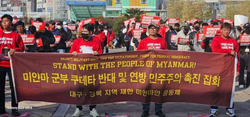 တောင်ကိုရီးယားနိုင်ငံ ဒယ်ဂူးမြို့တွင် တောင်ကိုရီးယားနိုင်ငံရောက် မြန်မာပြည်သူများက စစ်အုပ်စု၏ ရွေးကောက်ပွဲကို ဆန့်ကျင်ကန့်ကွက်သည့် “နိုင်ငံလုံးဆိုင်ရာ ဆန္ဒပြပွဲ” ကို ကျင်းပခဲ့ကြောင်း သိရှိရသည်။
