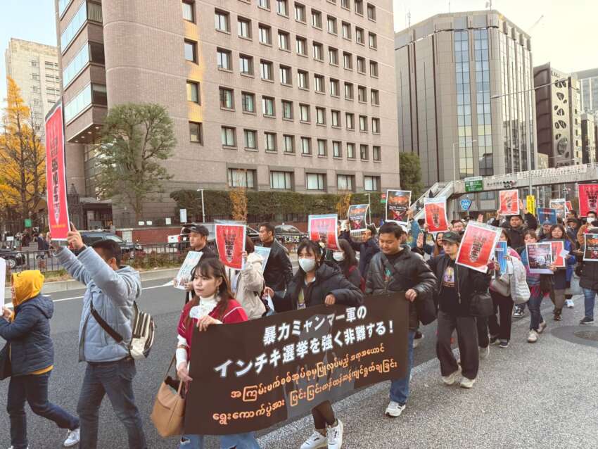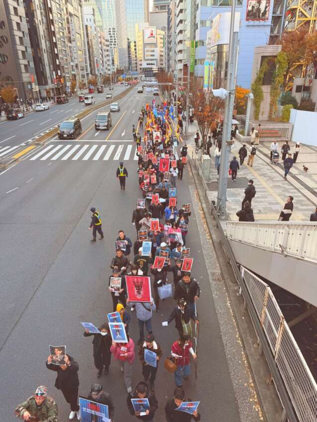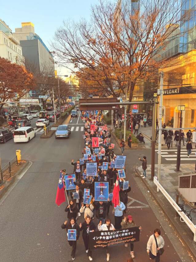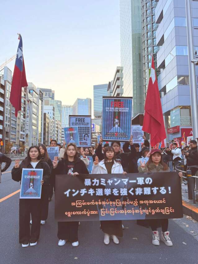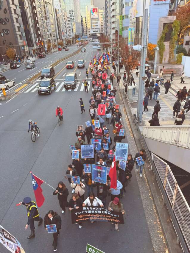 News ဂျပန်နိုင်ငံ တိုကျိုမြို့တွင် ဂျပန်ရောက်မြန်မာနိုင်ငံသားများက စစ်အုပ်စု၏ အတုအယောင်ရွေးကောက်ပွဲကို ကန့်ကွက်ရှုတ်ချ By Yangon Khit Thit News Agency December 8, 2025 0 83 Share FacebookTwitterPinterestWhatsAppLinkedinPrintTelegramCopy URL Must read မြန်မာနိုင်ငံတစ်ဝန်း စစ်ကောင်စီတပ်ဖွဲ့ဝင် ၁၅ ဦးသေဆုံး December 23, 2025 တောင်သာမြို့နယ်၊ ရုံးစည်ကြီးကျေးရွာတွင် တပ်စွဲထားသော စစ်တပ်ကို ဝင်ရောက် တိုက်ခိုက်မှု စစ်သား ၆ ဦးသေဆုံး December 23, 2025 ကောလင်းမြို့နယ်၊ နတ်အင်းရွာ စာသင်ကျောင်းကို စစ်တပ်က လေယာဉ်ဖြင့် ဗုံးကျဲ တိုက်ခိုက်မှု စစ်ဘေးရှောင် ပြည်သူ ၆ ဦး ထိခိုက်ဒဏ်ရာရ December 23, 2025 ရွှေရေကြည် သပိတ်စစ်ကြောင်းက စစ်တပ် ကျင်းပမည့် အတုအယောင်ရွေးကောက်ပွဲကို ဆန္ဒပြ December 23, 2025 Yangon Khit Thit News Agency ရန်ကုန်၊ ဒီဇင်ဘာ ၈ ဂျပန်နိုင်ငံ တိုကျိုမြို့တွင် ဂျပန်ရောက်မြန်မာနိုင်ငံသားများက အပြည်ပြည်ဆိုင်ရာ လူ့အခွင့်အရေးနေ့ ချီတက်ဆန္ဒဖော်ထုတ်ပွဲတွင် သွားရောက်ပူးပေါင်းကာ ဖက်ဆစ်စစ်အုပ်စု၏ အတုအယောင်ရွေးကောက်ပွဲအား ကန့်ကွက်ရှုတ်ချခြင်းနှင့် နိုင်ငံတော်အတိုင်ပင်ခံ ဒေါ်အောင်ဆန်းစုကြည်၊သမ္မတကြီး ဦးဝင်းမြင့်နှင့် မတရားဖမ်းဆီးထိန်းသိမ်းခံနေရသော မြန်မာပြည်သူများလွတ်မြောက်ရေးအတွက် တောင်းဆိုဆန္ဒပြုသည့် All In One Piece Movement အားလည်း တပြိုင်နက်တည်း ပူးတွဲလုပ်ဆောင်ခဲ့ကြကြောင်း သိရှိရသည်။ #မြန်မာ့နွေဦးတော်လှန်ရေး #ykt #yktnews #khitthitmedia #myanmar #media #burmese #foryou #foryoupage #NUG #springrevolution #KhitThitMedia #springrevolutionmyanmar2021 #PDF #againstmyanmarmilitarycoup #rejectmilitarycoupmyanmar TagsKhit Thit MedianewsNUGPDFSpring Revolution Share FacebookTwitterPinterestWhatsAppLinkedinPrintTelegramCopy URL Previous articleမုံရွာမြို့တွင် လူငယ် ၃၀ ကျော်ကို စစ်တပ်က ၂ ရက်ဆက်တိုက် ပေါ်တာဆွဲဖမ်းဆီး၊ ဝမ်းတွင်းမြို့နယ်တွင်လည်း နိုဝင်ဘာ ၁ လအတွင်း လူငယ် ၃၀၀ ကျော် ပေါ်တာဆွဲခံရNext articleဖားကန့်မြို့တွင် တရားမဝင်ရွေးကောက်ပွဲဆန့်ကျင်ရေး လူထု လှုပ်ရှားမှုပြုလုပ် - Advertisement - More articles တောင်သာမြို့နယ်၊ ရုံးစည်ကြီးကျေးရွာတွင် တပ်စွဲထားသော စစ်တပ်ကို ဝင်ရောက် တိုက်ခိုက်မှု စစ်သား ၆ ဦးသေဆုံး December 23, 2025 ကောလင်းမြို့နယ်၊ နတ်အင်းရွာ စာသင်ကျောင်းကို စစ်တပ်က လေယာဉ်ဖြင့် ဗုံးကျဲ တိုက်ခိုက်မှု စစ်ဘေးရှောင် ပြည်သူ ၆ ဦး ထိခိုက်ဒဏ်ရာရ December 23, 2025 မြန်မာ စစ်အုပ်စုက တာဝန်ခံမှုမှ ရှောင်လွှဲရန် စစ်ကော်မရှင်ဟု အမည်ပြောင်းလိုက်သည့်အပေါ် ဒဏ်ခတ်ပိတ်ဆို့မှုများ ချမှတ်ရန် အရေးတကြီးလိုအပ်နေဟု JFM ပြောဆို December 23, 2025 - Advertisement - Latest article မြန်မာနိုင်ငံတစ်ဝန်း စစ်ကောင်စီတပ်ဖွဲ့ဝင် ၁၅ ဦးသေဆုံး December 23, 2025 တောင်သာမြို့နယ်၊ ရုံးစည်ကြီးကျေးရွာတွင် တပ်စွဲထားသော စစ်တပ်ကို ဝင်ရောက် တိုက်ခိုက်မှု စစ်သား ၆ ဦးသေဆုံး December 23, 2025 ကောလင်းမြို့နယ်၊ နတ်အင်းရွာ စာသင်ကျောင်းကို စစ်တပ်က လေယာဉ်ဖြင့် ဗုံးကျဲ တိုက်ခိုက်မှု စစ်ဘေးရှောင် ပြည်သူ ၆ ဦး ထိခိုက်ဒဏ်ရာရ December 23, 2025 ရ