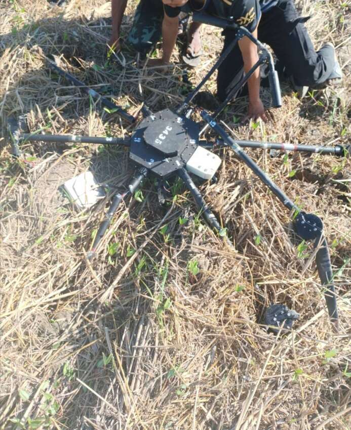 နတ်တလင်းမြို့နယ်တွင် ကျေးရွာများကို ဗုံးလာကျဲသည့် စစ်တပ်၏ ဒရုန်း ၁ စီး ပျက်ကျပြီး PDF တပ်က သိမ်းဆည်းရရှိ