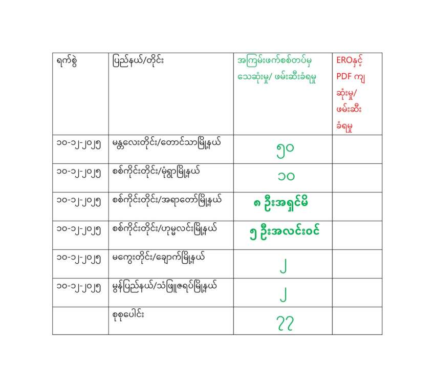 ရန်ကုန်ခေတ်သစ်အနေဖြင့် နေ့စဉ် စစ်သား သေဆုံးမှု စာရင်းများကို ထုတ်ပြန် ရာတွင် ဒေသကာ ကွယ်ရေးတပ်ဖွဲ့များ၏ ထုတ်ပြန်ချက်များနှင့် ပြောဆိုချက် များကို စုစည်းဖော် ပြရခြင်းဖြစ်ပြီး မြေ ပြင် အခြေအနေတွင် အမှန်တကယ် စစ်သားများ သေဆုံးမှု ရှိ၊ မရှိ ကွင်းဆင်း အတည်ပြုနိုင်ခြင်း မရှိသည်ကို သိစေအပ်ပါသည်။
