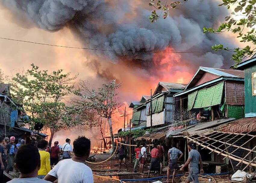 ဓာတ်ပုံ- ယခုနှစ် ဇန်နဝါရီလအတွင်း ရမ်းဗြဲမြို့နယ်၊ ကျောက်နီမော်ကျေးရွာကို စစ်တပ်က လေကြောင်းတိုက်ခိုက်ခဲ့စဉ်။ (ပုံအဟောင်းကို အသုံးပြုထားပါသည်။)
