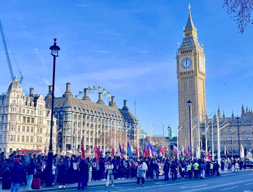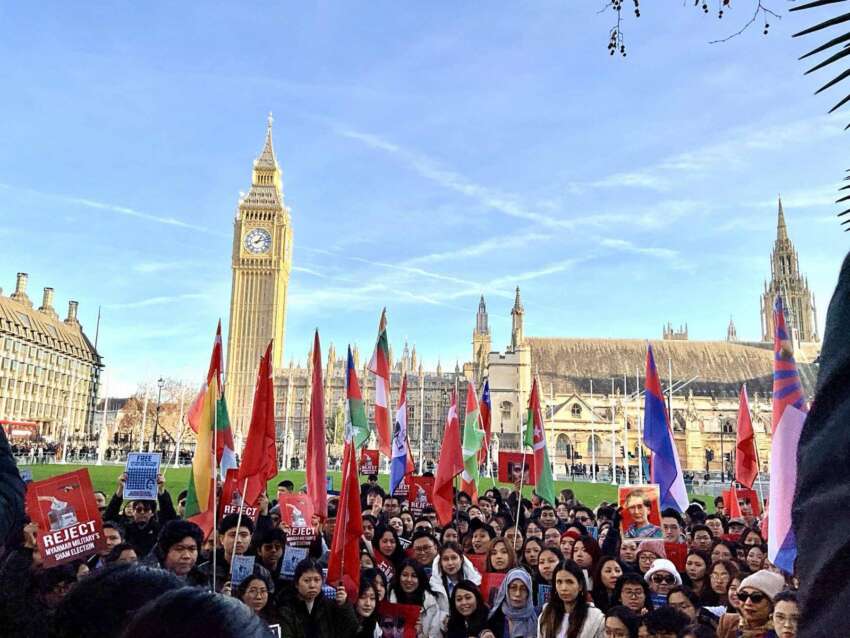 ယူကေနိုင်ငံ လန်ဒန်မြို့ ပါလီမန်အဆောက်အအုံရှေ့တွင် ဒေါ်အောင်ဆန်းစုကြည်နှင့် တကွ နိုင်ငံရေး အကျဉ်းသားများအားလုံးလွတ်မြောက်ရေး၊ အတုအယောင်ရွေးကောက်ပွဲကို ဆန့်ကျင်ရေး ဆန္ဒပြပွဲ ကျင်းပခဲ့ကြောင်း သိရှိရသည်။