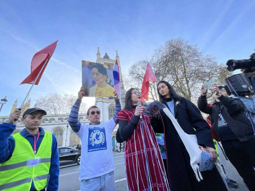 ဆန္ဒပြပွဲကို လန်ဒန်မြို့နှင့် ယူကေ တနိုင်ငံလုံးမှမြန်မာတိုင်းရင်းသားများပေါင်းစုံ ၇၀၀ ခန့်လာရောက်ပါဝင်ခဲ့ကြကာ ရခိုင်ပြည်နယ် မြောက်ဦးဆေးရုံကို စစ်ကောင်စီ ဗုံးကြဲမှုကြောင့် သေဆုံးဒဏ်ရာရခဲ့ကြသူများနှင့် နွေဦးတော်လှန်ရေးတွင် ကျဆုံးသွားခဲ့ရသော သူရဲကောင်းများ ပြည်သူများအားလုံး အတွက် ဝမ်းနည်းခြင်း အထိမ်းအမှတ် တစ်မိနစ် ငြိမ်သက်ခဲ့ကြပြီး ယူကေနိုင်ငံဆိုင်ရာ NUG ကိုယ်စားလှယ် ဦးမောင်မောင်အောင် ဒေါက်တာသက်ကိုကို နှင့် တိုင်းရင်းသား ကိုယ်စားလှယ်များက စကားပြောကြားခဲ့ကြကြောင်း သိရှိရသည်။