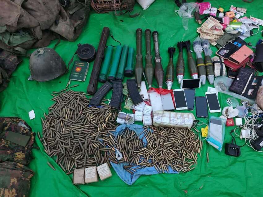 တိုက်ပွဲအတွင်း အကြမ်းဖက် စစ်သားများထံမှ G3 ကျည် ၈၀၀ ကျော် ၊ 5.56 ကျည် ၇၀၀ ကျော် ၊ ၆၀ မမ ဗုံး ၅ လုံး၊ RPG ၃ လုံး ၊ ပို့ယမ်း ၃ တောင့်၊ အီနာဂါဗုံး ၁ လုံး၊ MA ကျည်ဘောက် ၃ ခု ၊ MA-2 ကျည်ဘောက်ဝိုင်း ၁ ခု နှင့် ငါးကြင်းမှီးပြောင်းအပို ၁ ခုတို့ကို သိမ်းဆည်းရမိခဲ့ကြောင်း သိရှိရသည်။