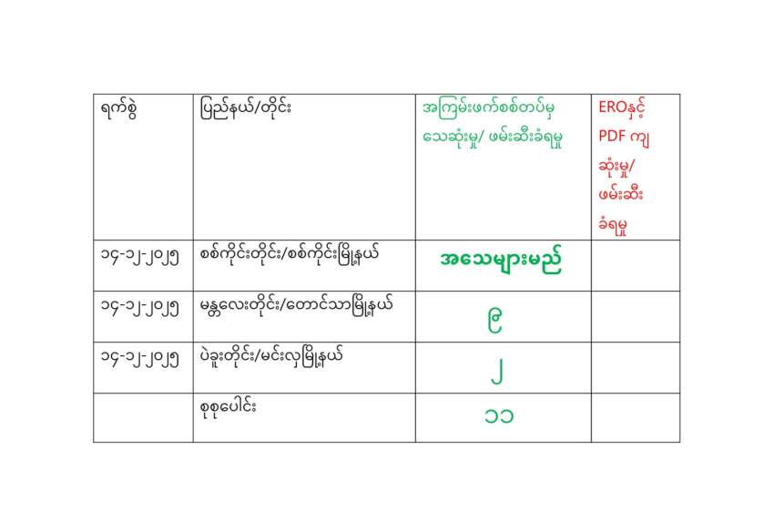 ရန်ကုန်ခေတ်သစ်အနေဖြင့် နေ့စဉ် စစ်သား သေဆုံးမှု စာရင်းများကို ထုတ်ပြန် ရာတွင် ဒေသကာ ကွယ်ရေးတပ်ဖွဲ့များ၏ ထုတ်ပြန်ချက်များနှင့် ပြောဆိုချက် များကို စုစည်းဖော် ပြရခြင်းဖြစ်ပြီး မြေ ပြင် အခြေအနေတွင် အမှန်တကယ် စစ်သားများ သေဆုံးမှု ရှိ၊ မရှိ ကွင်းဆင်း အတည်ပြုနိုင်ခြင်း မရှိသည်ကို သိစေအပ်ပါသည်။