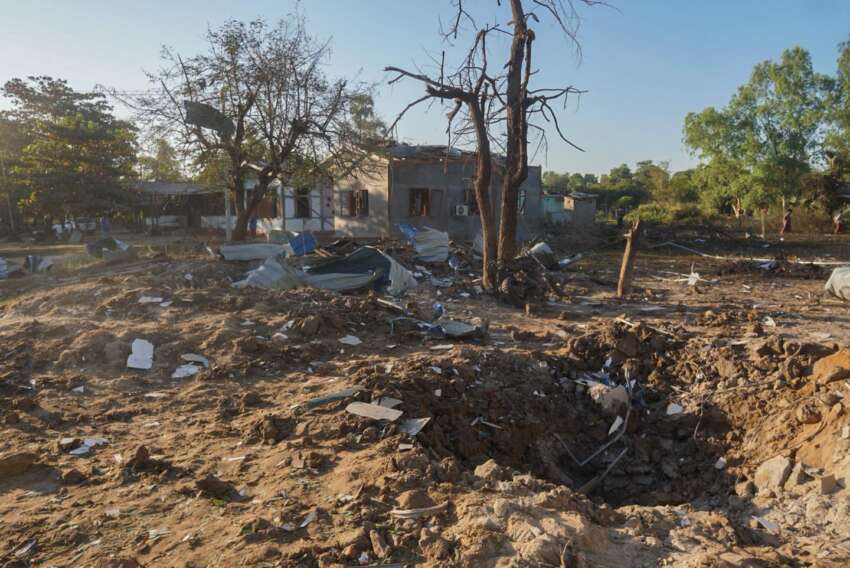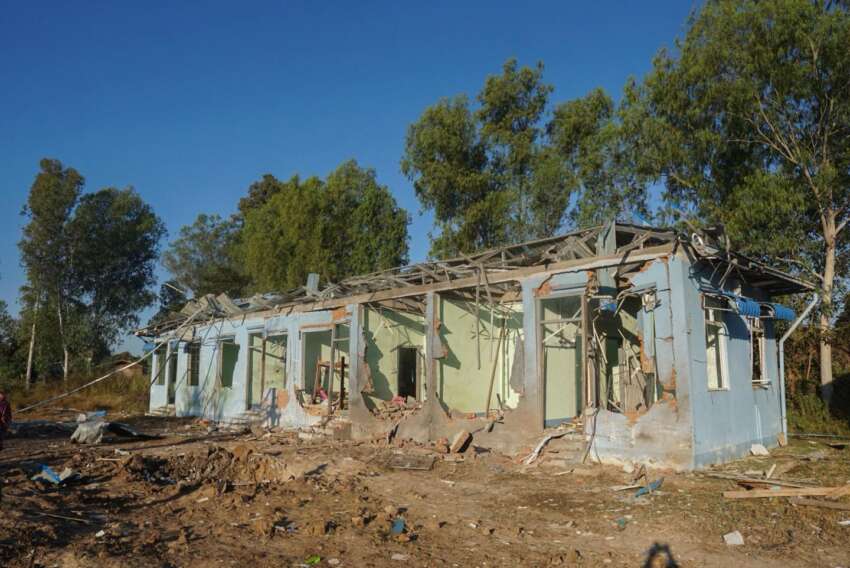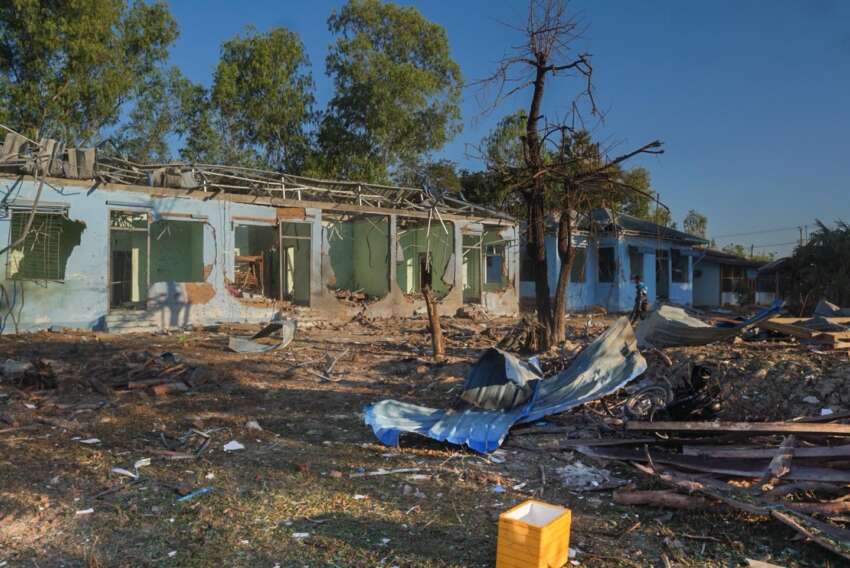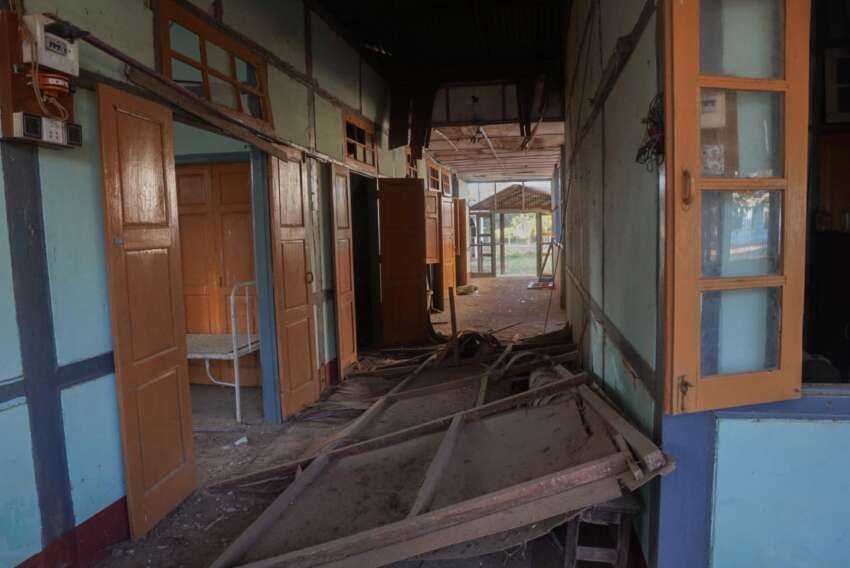 ဓာတ်ပုံ – ဒီဇင်ဘာ ၁၇ ရက်နေ့ အကြမ်းဖက် စစ်တပ်က လေယာဉ်ဖြင့် ဗုံးကျဲ တိုက်ခိုက်ခဲ့သော ရေဦးမြို့နယ် ၊ တမာတောကျေးရွာ တိုက်နယ်ဆေးရုံ။