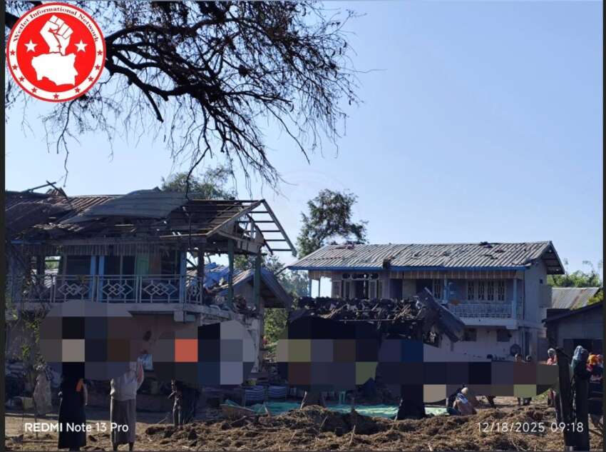 ဝက်လက်ရှိ ကျေးရွာများကို စစ်တပ်က ဒီဇင်ဘာလ အတွင်း လေယာဉ်ဖြင့် ဗုံးကျဲ တိုက်ခိုက်မှု သံဃာတော် ၁ ပါး အပါအဝင် ပြည်သူ ၁၇ ဦးသေဆုံးပြီး ထိခိုက်ဒဏ်ရာရရှိသူ ၁၀ ဦးကျော်ရှိ