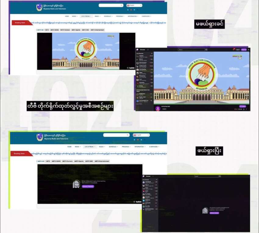 အဆိုပါ အက်ပ်များနှင့် ဝဘ်ဆိုက်များကို ၂၀၂၂ ခုနှစ်တွင် မင်းအောင်လှိုင်ကိုယ်တိုင် မိတ်ဆက်ပေး ဖွင့်လှစ်ခဲ့ခြင်းဖြစ်သည်။ ၄င်းတို့၏ အတုအယောင်ရွေးကောက်ပွဲ စတင်ရန် နှစ်ပတ်ပင် မလိုတော့သည့် အချိန်အရောက်တွင်မှ ယခုကဲ့သို့ ထုတ်လွှင့်မှုများ ရပ်ဆိုင်းသွားခဲ့ခြင်းသည် မင်းအောင်လှိုင်နှင့် အဆိုပါ ဝဘ်ဆိုက်/အက်ပ်များကို စီမံနေသည့် စစ်အုပ်စု ပြန်ကြားရေးဝန်ကြီးဌာနအတွက် အကြီးအကျယ် အရှက်ရဖွယ်ဖြစ်ရပ်တစ်ခုပင် ဖြစ်သည်။