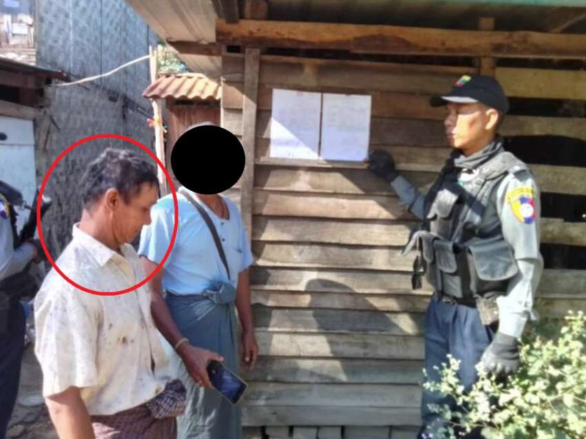 ဓာတ်ပုံ- အနီဖြင့် ၀ိုင်းထားသူမှာ စစ်တပ်ဒေါက်တိုင် ရာအိမ်မှူး ကိုထွေး။