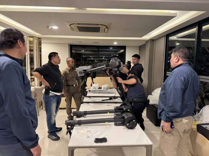 ထိုင်းရဲတပ်ဖွဲ့က သုဝဏ္ဏဘူမိလေဆိပ်မှ ၃ ကီလိုမီတာခန့်အကွာရှိ Grand BS Airport Hotel ကို ဒီဇင်ဘာလ ၂၃ ရက်နေ့ ဝင်ရောက်ရှာဖွေခဲ့ခြင်းဖြစ်ပြီး အဆိုပါဟိုတယ်ခန်းအား လေဆိပ်အနီး ဒရုန်းပျံသန်းမှုကို ထိန်းချုပ်သည့် စခန်းအဖြစ် သံသယရှိသဖြင့် စီးနင်းခဲ့ခြင်းဖြစ်ပြီး၊ အခန်းအတွင်းရှိ DJI တရုတ်လုပ် အမျိုးအစား ဒရုန်း ၁၀ စီးကို သက်သေခံပစ္စည်းအဖြစ် သိမ်းဆည်းခဲ့ကြောင်း သိရှိရသည်။
