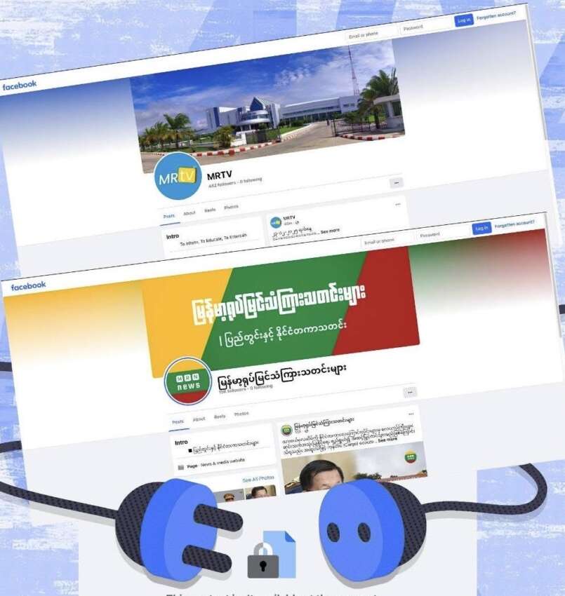 Facebook သည် MITV နှင့် ရတနာပုံသတင်းစာတို့၏ စာမျက်နှာများကို အစောပိုင်းကတည်းက ဖယ်ရှားခဲ့ပြီးဖြစ်သော်လည်း ပြီးခဲ့သည့်ရက်ပိုင်းအတွင်း YouTube၊ Twitch နှင့် Kick တို့က ၄င်းတို့ပလက်ဖောင်းပေါ်ရှိ အဆိုပါ MRTV တိုက်ရိုက်ထုတ်လွှင့်မှုများအား ပိတ်ပင်မှုများ ရှိလာခဲ့ပြီးနောက်တွင် Facebook က ယခုကဲ့သို့ MRTV နှင့် MRN စာမျက်နှာအသစ်များကိုပါ ထပ်မံဖယ်ရှားခဲ့ခြင်း ဖြစ်သည်။