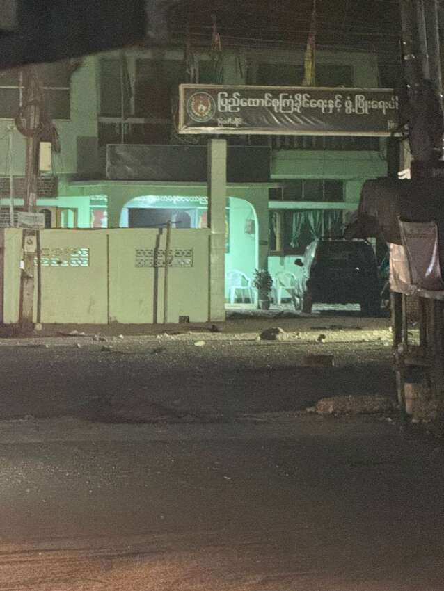 မြဝတီမြို့ ကြံ့ဖွတ်ပါတီရုံး ဒရုန်းဖြင့် ဗုံးကျဲ တိုက်ခိုက်ခံရပြီး ထိခိုက် ပျက်စီးမှုရှိ