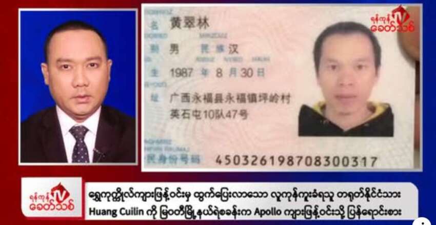 -ကရင်ပြည်နယ်၊ မြ၀တီမြို့နယ်အတွင်းက အကြမ်းဖက် စစ်တပ်လက်အောက်ခံ BGF ထိန်းချုပ်ထားရာ ရွှေကုက္ကိုလ်ကျားဖြန့်ဝင်းကနေ ထွက်ပြေးလွတ်မြောက်လာတဲ့ လူကုန်ကူးခံရသူ တရုတ်နိုင်ငံသား ဟွမ်ကွေးလင် ကို စစ်တပ်ရဲ့ မြ၀တီမြို့နယ်ရဲစခန်းက Apollo ကျားဖြန့်ဝင်းကို ပြန်လည်ရောင်းစား လိုက်ပြန် တဲ့အတွက် သူ့ကို ကယ်တင်ပေးဖို့ ရောင်းစားခံရသူ တရုတ်နိုင်ငံသားက ရန်ကုန်ခေတ်သစ်ကို ဆက်သွယ်ပြောဆိုလာပါတယ်။