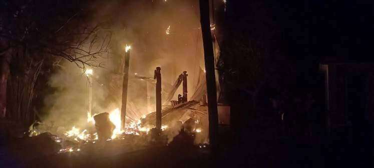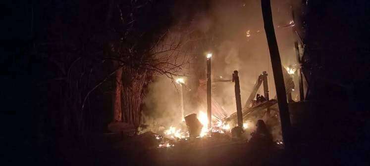 ဓာတ်ပုံ – ယမန်နေ့ ဇန်နဝါရီလ ၇ ရက် ညနေ ၆ နာရီ ၃၆ မိနစ်တွင် စစ်တပ်က လေကြောင်းတိုက်ခိုက်မှု ကြောင့် မီးလောင်၊ ပျက်စီးသွားသော မြင်းဇာဘုန်းကြီးကျောင်း။