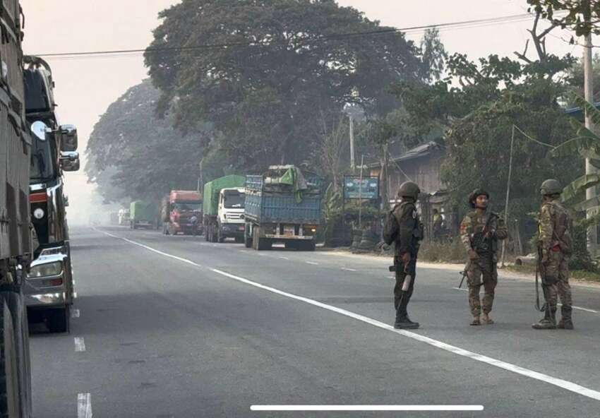 ဓာတ်ပုံ – ရန်ကုန်-မန္တလေး လမ်းဟောင်းပေါ်သို့ ယမန်နှစ်အတွင်း ရောက်ရှိခဲ့ကြသည့် ပြည်သူ့ကာကွယ်ရေးတပ်ဖွဲ့ဝင်များ။ (ပုံအဟောင်းကို အသုံးပြုထားပါသည်။)