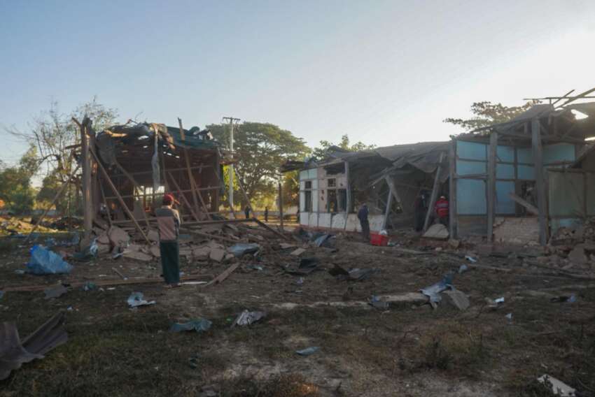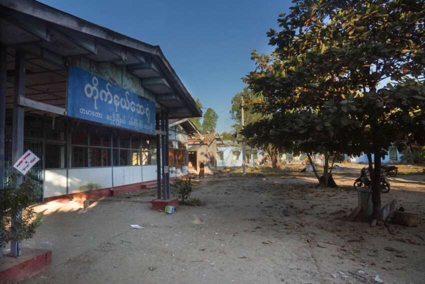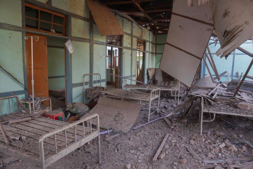 ဓာတ်ပုံ – အကြမ်းဖက် စစ်တပ်က ဗုံးကျဲ တိုက်ခိုက်မှုကြောင့် ပျက်စီးခဲ့သော ရေဦးမြို့နယ် အနောက်ခြမ်း တမာတောရွာ တိုက် နယ်ဆေးရုံ (ပုံအဟောင်းဖြစ်သည်)