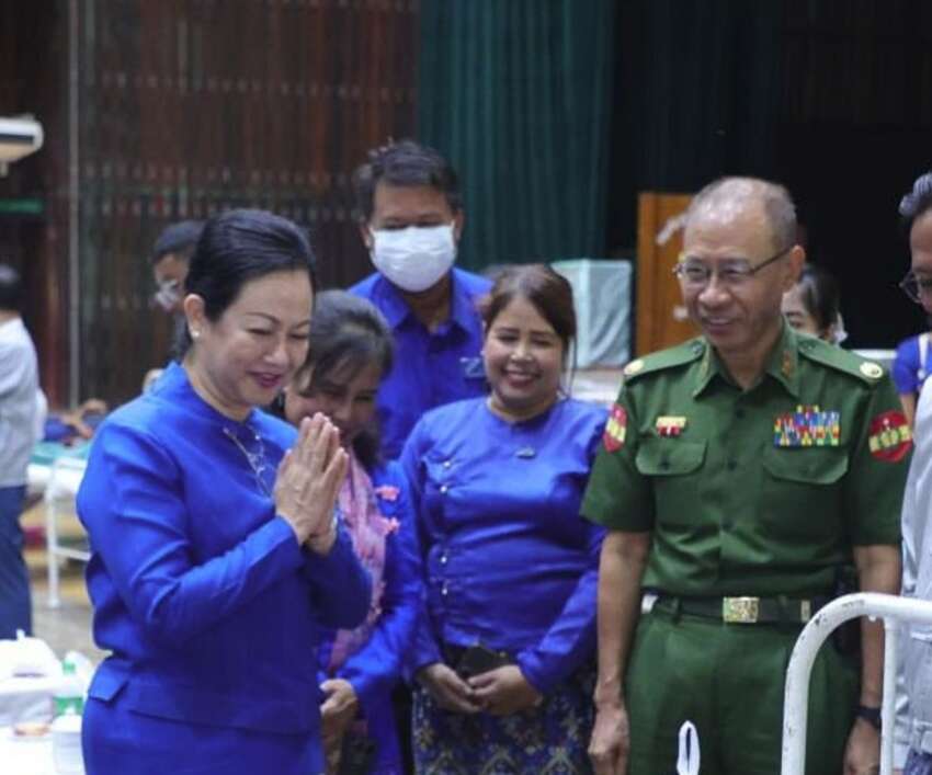 ပြည်ပသံရုံးတစ်ခုနှင့် Mask တပ်ပြီး လျှို့ဝှက်စွာ သွားရောက် တွေ့ဆုံမှုဖြင့် ပြည်သူ့ရှေ့ ဆောင်ပါတီ- PPP ဥက္ကဋ္ဌ သက်သက်ခိုင်နှင့် အဖွဲ့ဝင် ထက်ထက်လှိုင်တို့ကို အရေးယူမည်ဖြစ်ကြောင်း အကြမ်းက် စစ်တပ်လက်အောက်ခံ ရွေးကောက်ပွဲကော်မရှင်က ကြေညာ သည်။