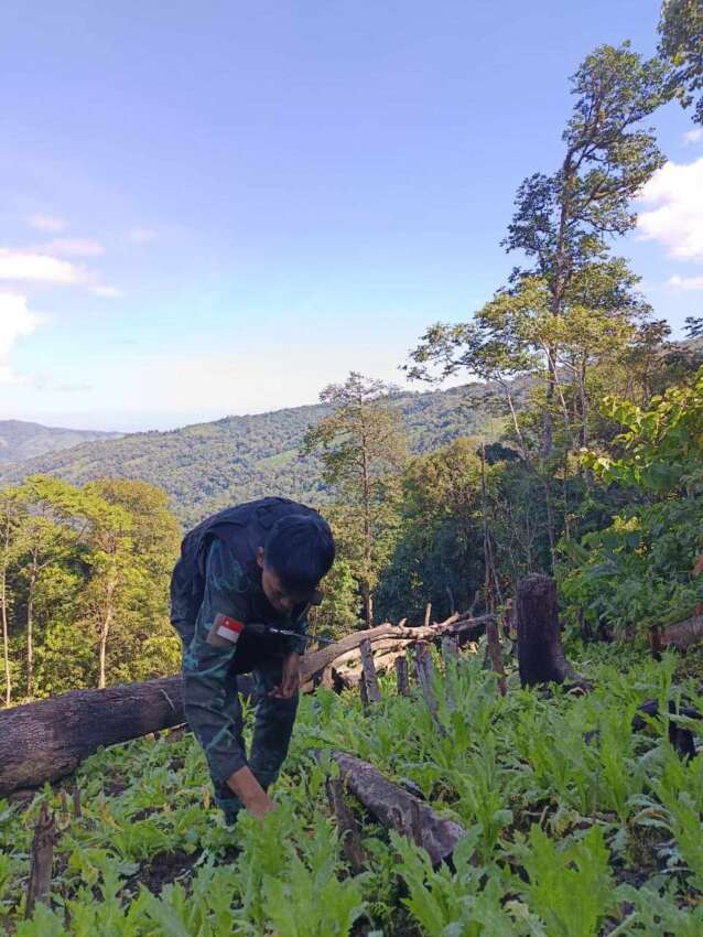 အဆိုပါတောင်ပေါ်ဒေသများသည် ယခင်က အကြမ်းဖက် စစ်တပ်၏ နတ်ရေကန်စစ်စခန်း ထိန်းချုပ်မှုအောက်တွင် ရှိခဲ့သည့် နယ်မြေများဖြစ်ပြီး တော်လှန်ရေးတပ်ဖွဲ့များက ထိုးစစ်ဆင်တိုက်ခိုက်ပြီးနောက် နယ်မြေစည်းရုံးရေးလုပ်ငန်းများ လုပ်ဆောင်ရာမှ ယခုကဲ့သို့ ဘိန်းခင်းများကို တွေ့ရှိခဲ့ခြင်းဖြစ်ကြောင်းသိရှိရသည်။