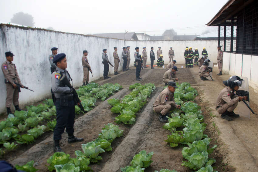 ဓာတ်ပုံ – စစ်တပ်က အကျဉ်းထောင်အတွင်း အကြမ်းဖက်နှိမ်နင်းရေး လေ့ကျင့်နေစဉ်။ (ပုံအဟောင်းကို အသုံးပြုထားပါသည်။)