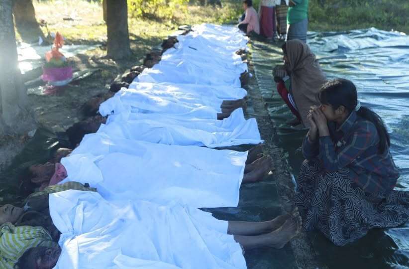 ဓာတ်ပုံ- ၂၀၂၅ ခုနှစ်၊ ဇန်နဝါရီလ ၁၈ ရက်နေ့ မြောက်ဦးမြိုနယ်၊ ရမ်းချောင်းအနီးသို့ လေယာဉ်ဖြင့် ဗုံးကျဲမှုကြောင့် သေဆုံးခဲ့ကြသော စစ်သုံ့ပန်းမိသားစုဝင်များ။