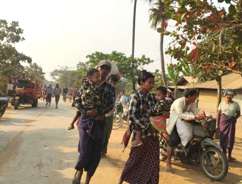 ဓာတ်ပုံ- အညာဒေသတွင် စစ်တပ်၏ စစ်ကြောင်းထိုးမှုကြောင့် ထွက်ပြေးနေရသော ပြည်သူများ။ (ပုံအဟောင်းကို အသုံးပြုထားပါသည်။)